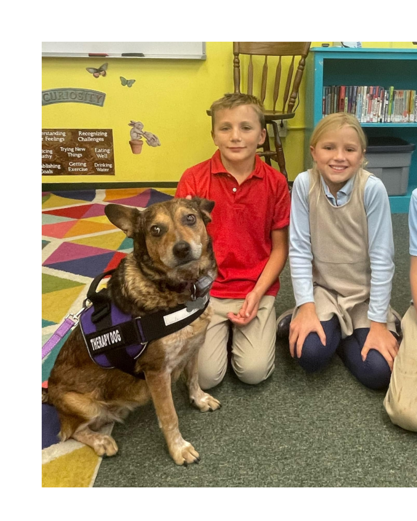 Throughout the school year, Sassy can often be found visiting classrooms, spending time with individual students, or offering comfort during particularly busy or stressful moments. From helping students manage big emotions to celebrating small victories, her presence brings a sense of calm and joy to our school community.